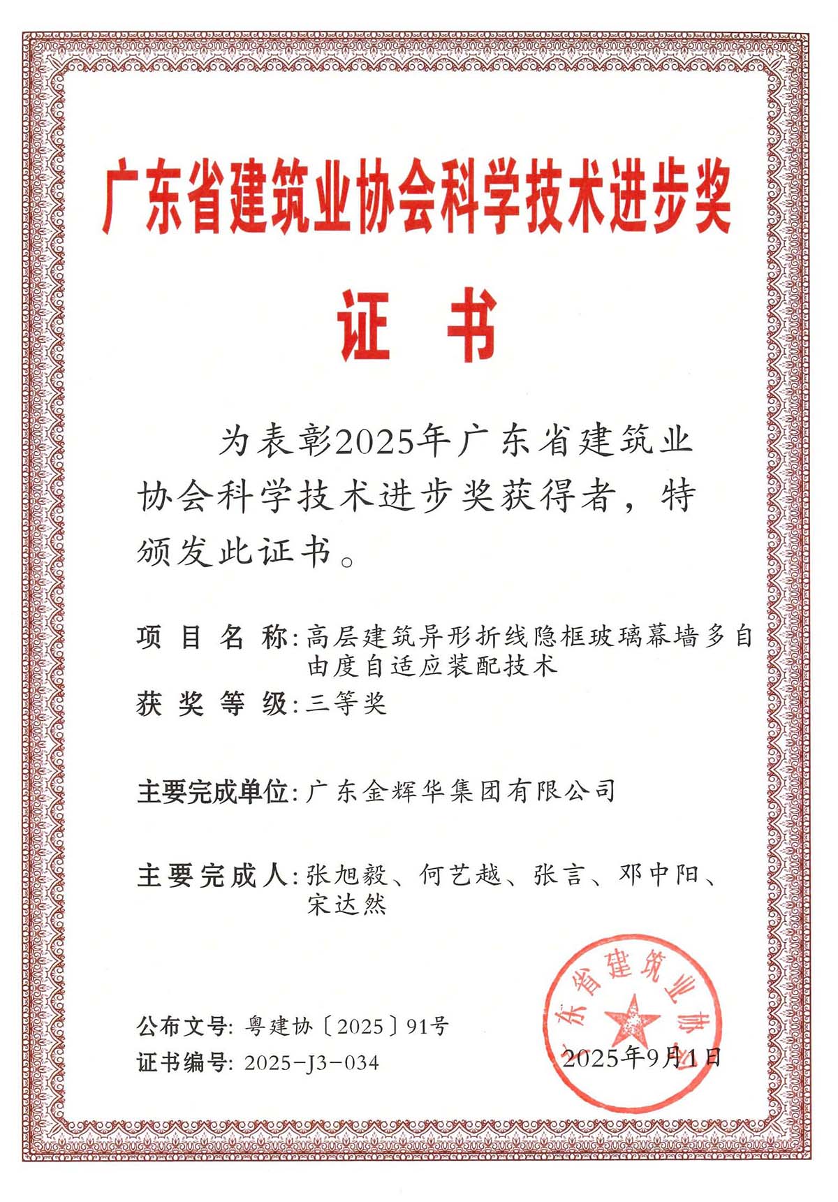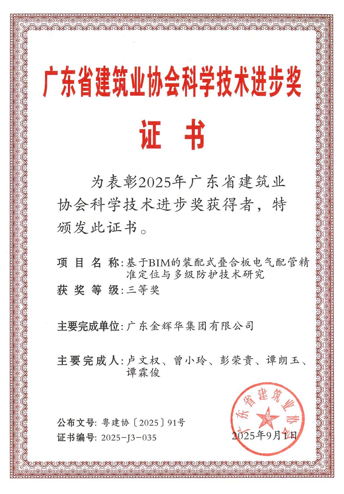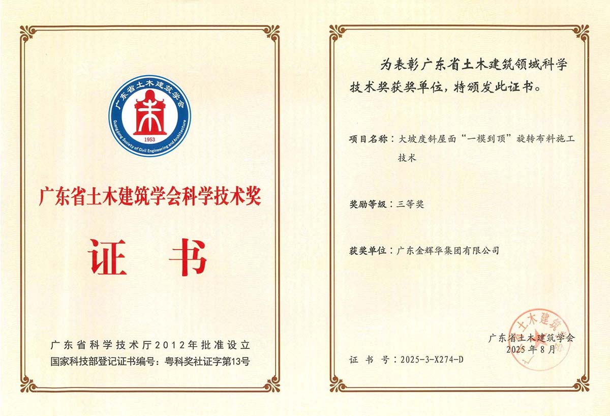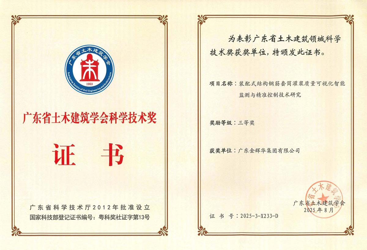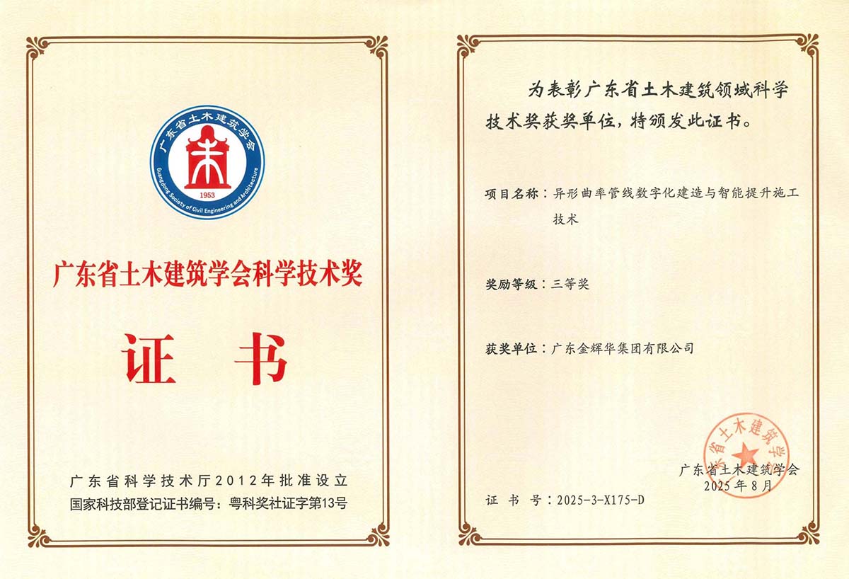 此次多項成果榮獲行業(yè)重要獎項,是對我們過去科技創(chuàng)新工作的肯定,更是激勵我們不斷前行的動力。未來,金輝華集團(tuán)將繼續(xù)秉承科技引領(lǐng)、創(chuàng)新驅(qū)動的理念,緊盯行業(yè)前沿技術(shù),不斷加強(qiáng)創(chuàng)新能力。我們將致力于打造更多具有核心競爭力的科技成果,為建筑行業(yè)的發(fā)展注入更多的金輝華智慧。